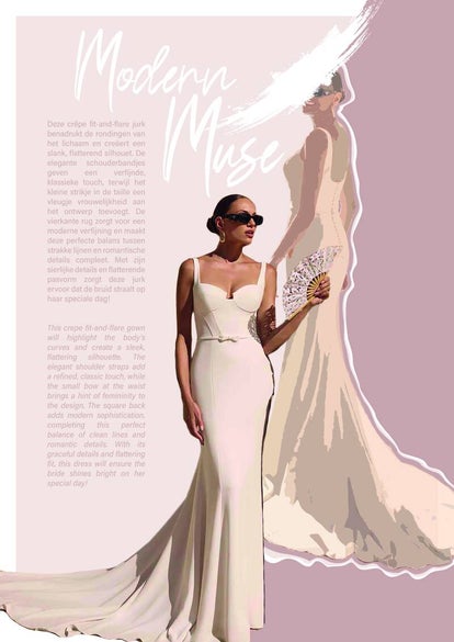 This crepe fit-and-flare gown will highlight the body’s curves and create a sleek, flattering silhouette. The elegant shoulder straps add a refined, classic touch, while the small bow at the waist brings a hint of femininity to the design. The square back adds modern sophistication, completing this perfect balance of clean lines and romantic details. With its graceful details and flattering fit, this dress will ensure the bride shines bright on her special day!